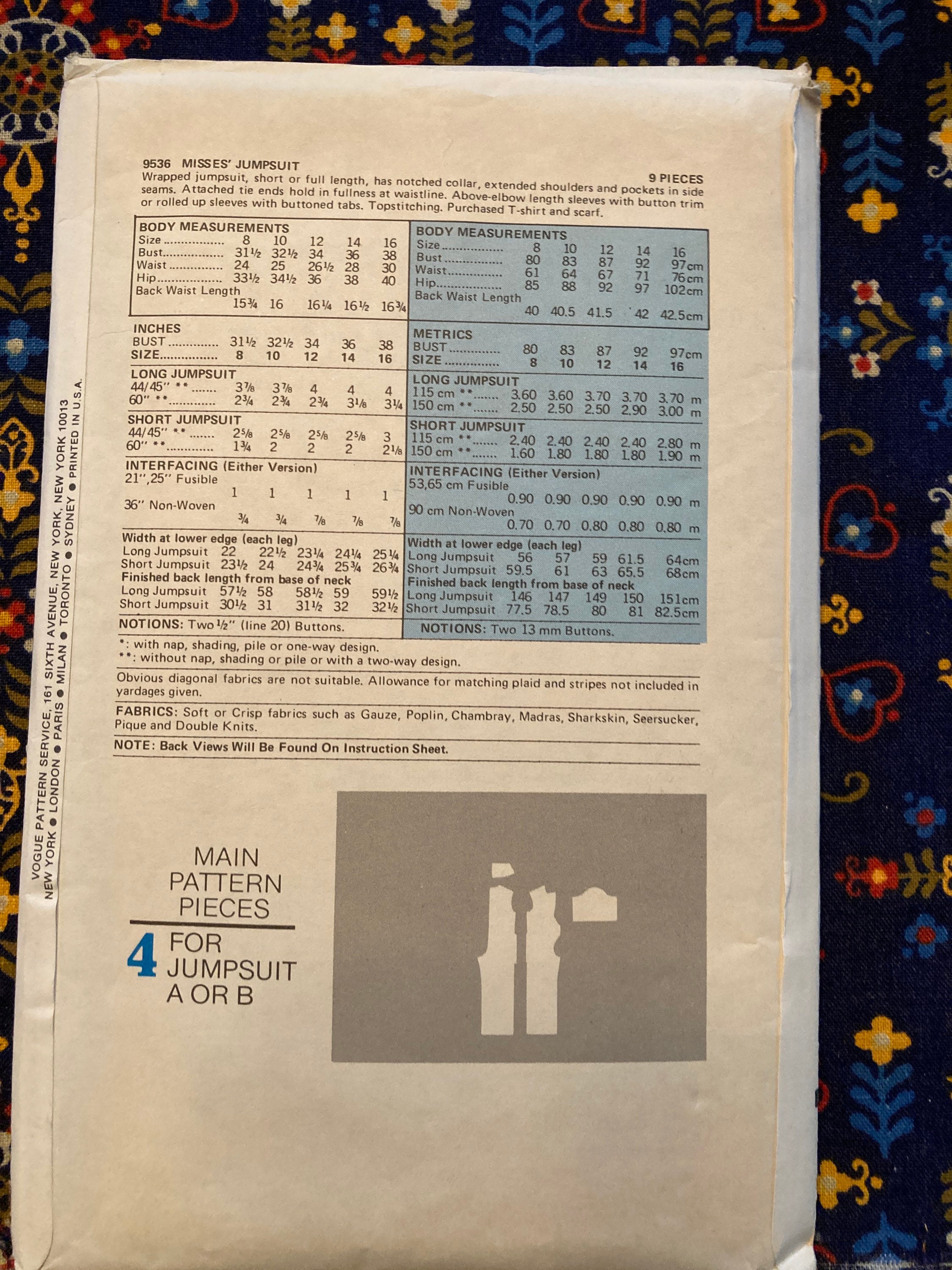 Vintage 1970s Vogue 9536 Sewing Pattern Size 12 Bust 34 Etsy Canada